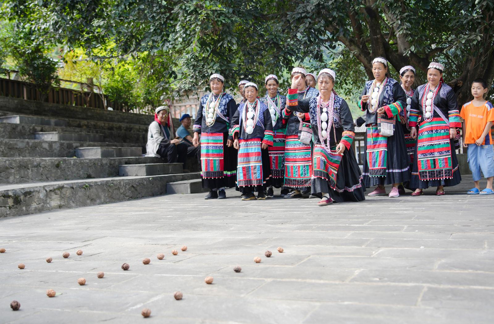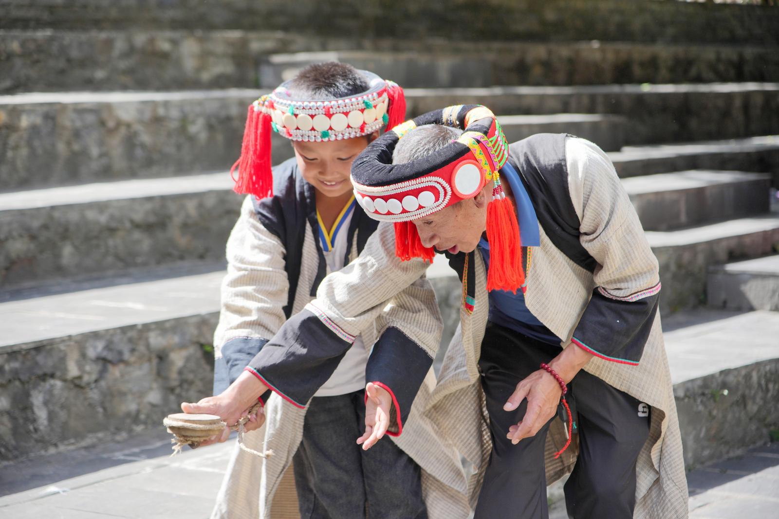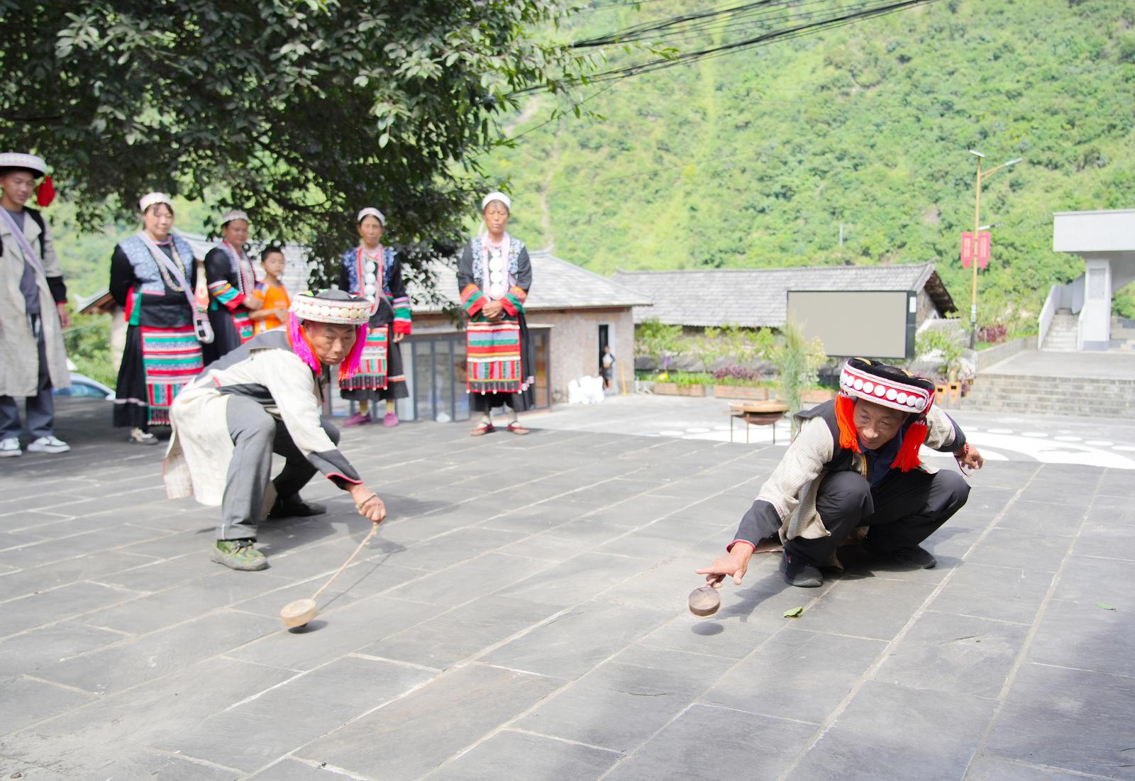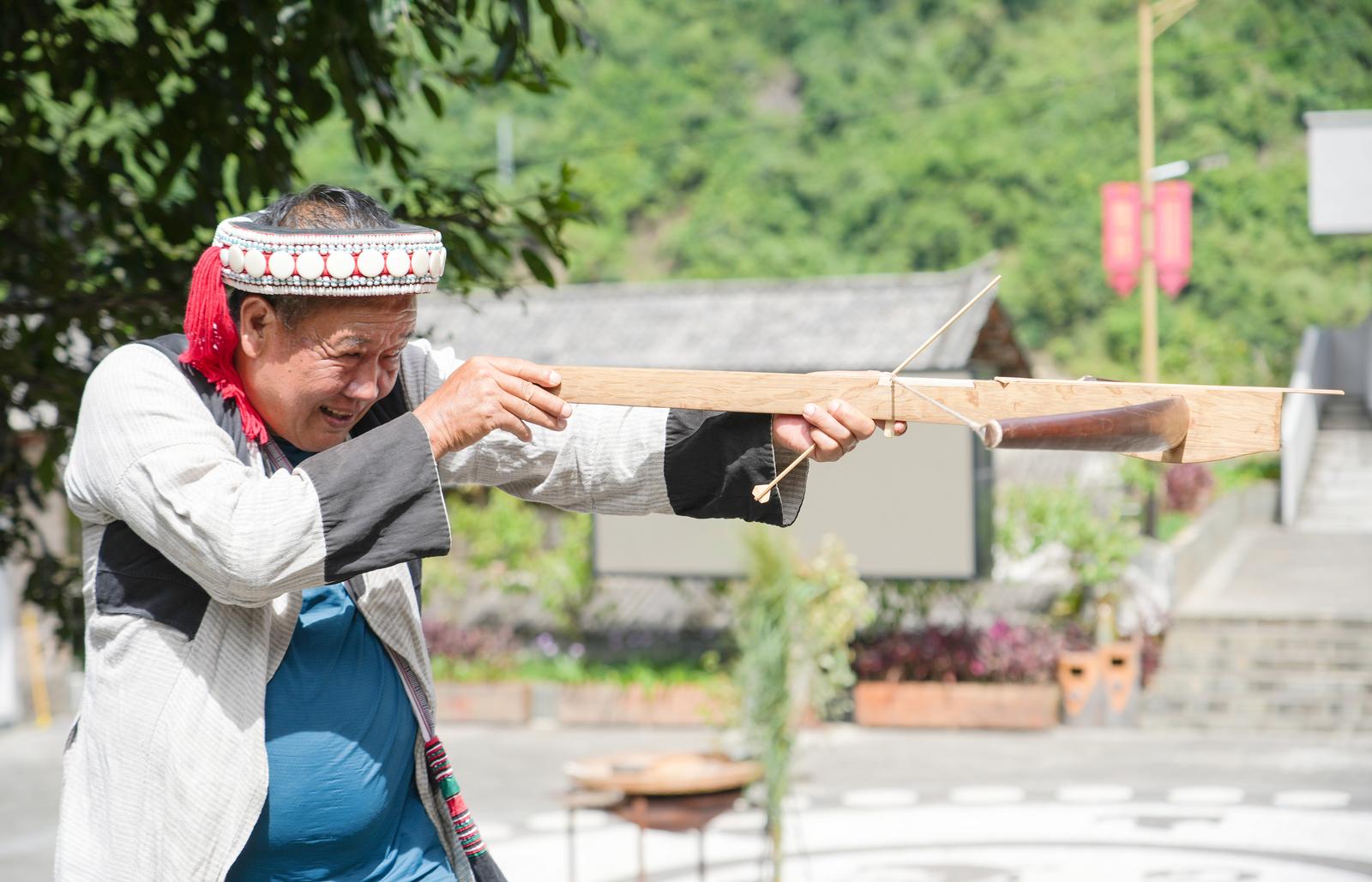 培训现场,“尚旺节”省、州级代表性传承人及当地民间艺人亲自授课,带领学员深度还原“尚旺节”的核心民俗环节:从象征丰收的舂籼米粑粑,到承载族群信仰的祈晴、祈雨、祈福仪式,再到展现民族风采的射弩、打核桃、打陀螺等传统竞技项目,每一个环节都力求原汁原味,手把手地教学,让参与者在亲身实践中触摸非遗温度,在文化体验中感知民族文化历史。