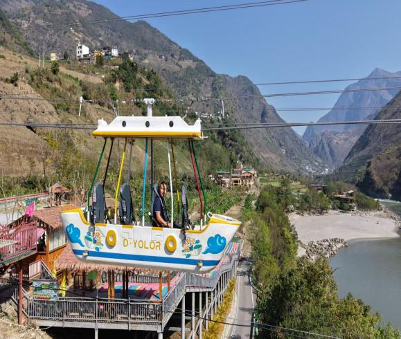 乘溜索穿梭在山水之间
