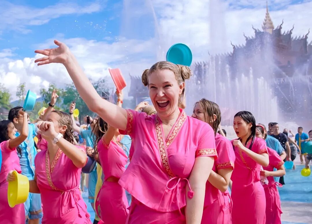 海外游客欢度泼水节
