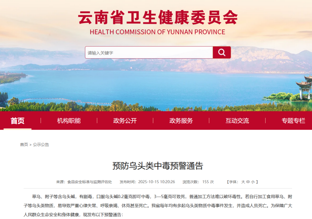发布预防乌头类中毒预警通告