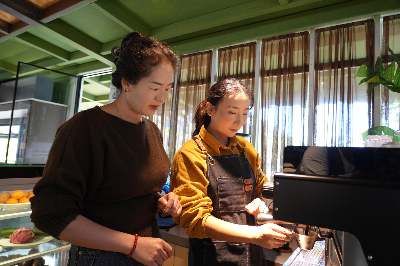 “胡玉兰工作很认真,对咖啡也是真心喜欢。庄园会请老师对他们进行系统的培训,但她出彩还是在自身努力,都是她一杯杯咖啡冲泡实践的结果。”布莱恩咖啡庄园负责人刘海龙说,胡玉兰从学习辨别咖啡豆品质,到掌握手冲、意式浓缩等冲泡技巧,再到将咖啡文化与本地民族风情相融合,花了1个月的时间。