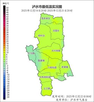 过去一周,全市天气晴朗无降水。片马镇、老窝镇日最低气温≤0℃,最低为片马站-0.6℃;其次为风雪丫口站-0.4℃。