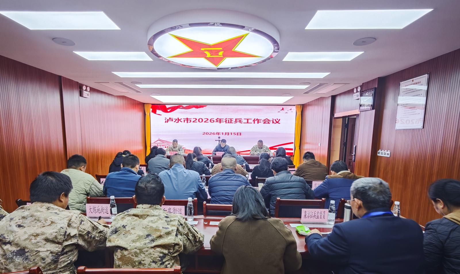 1月15日,2026年全省、全州征兵工作电视电话会议暨泸水市征兵工作会议召开,市人民政府市长、市征兵工作领导小组组长李祖明出席会议并讲话,市人武部上校部长、市征兵领导小组副组长郑丽强出席会议。