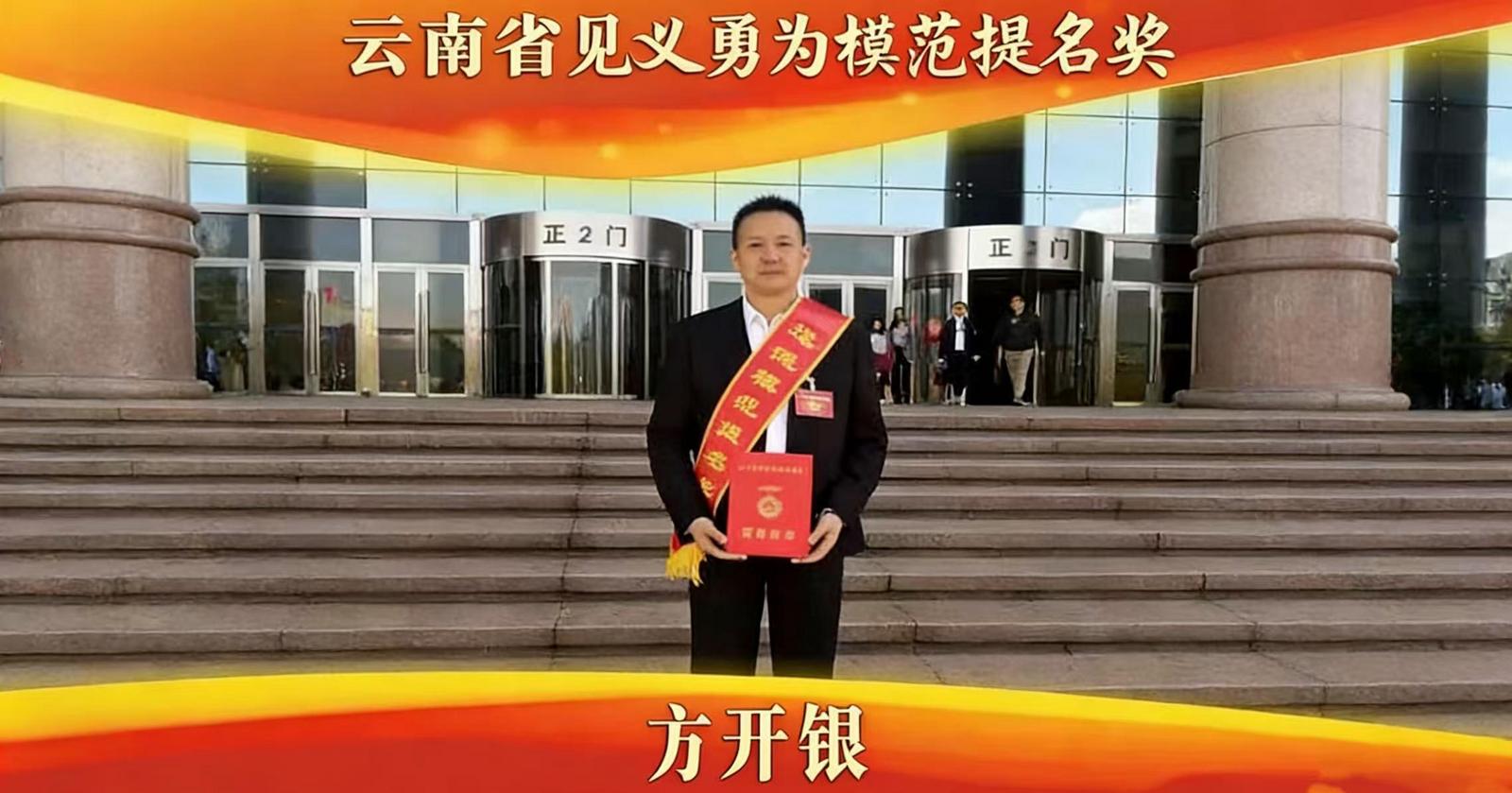 2017年11月7日晚,六库江边生态走廊传来呼救声,一名女子不慎落入怒江,当时正在附近散步的方开银,听到喊声立刻和朋友跑了过去。眼看人命关天,他只说了一句“我会游泳,我跳下去”,便不顾江水冰冷、暗流危险,纵身跳进江中。落水者背包浸水后越来越沉,施救格外艰难,方开银在水里反复发力,终于牢牢抓住对方,一点点往岸边拖。在岸上众人的帮忙下,女子成功获救,而他没留姓名就离开了。