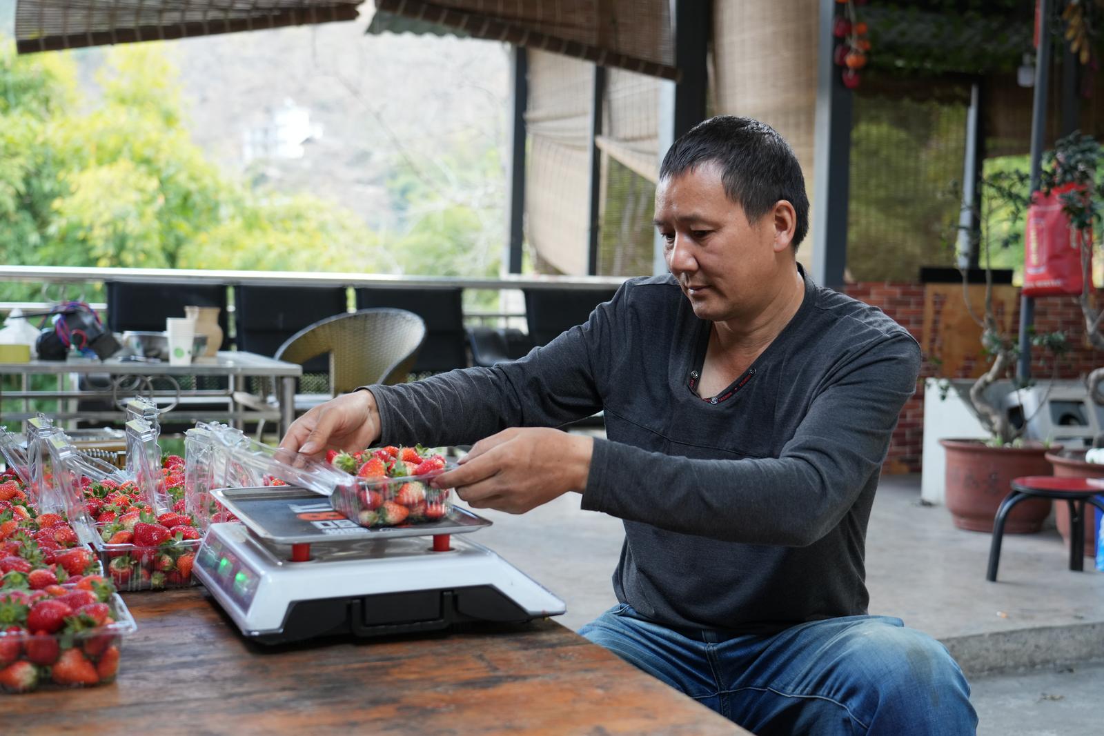 “我们的草莓都是订购后新鲜采摘,足斤足两,预定采摘后当天送到客户手中,保证顾客吃到最新鲜的草莓。”方开银边打包草莓边介绍道。