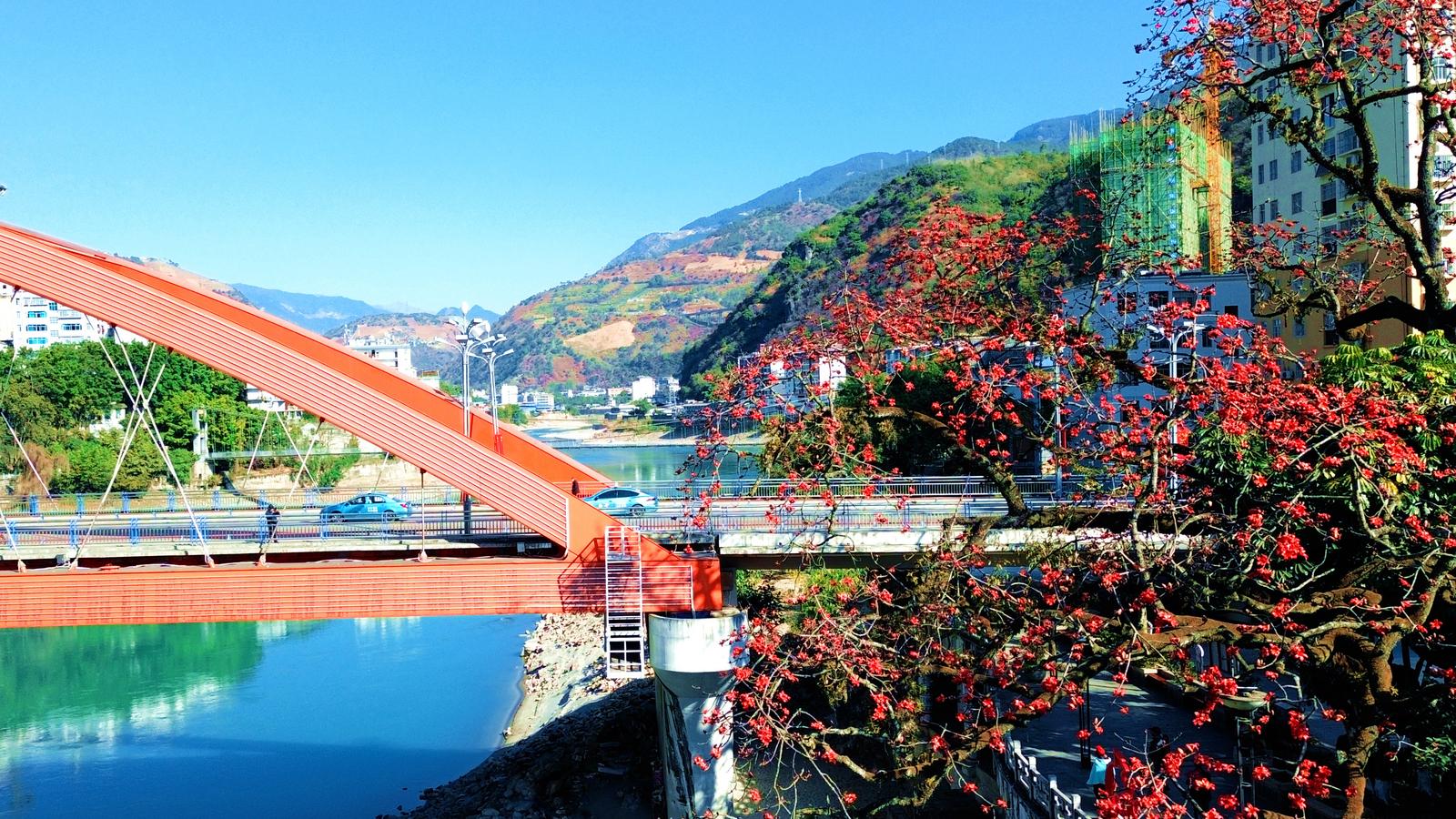 沿江两岸的攀枝花次第绽放