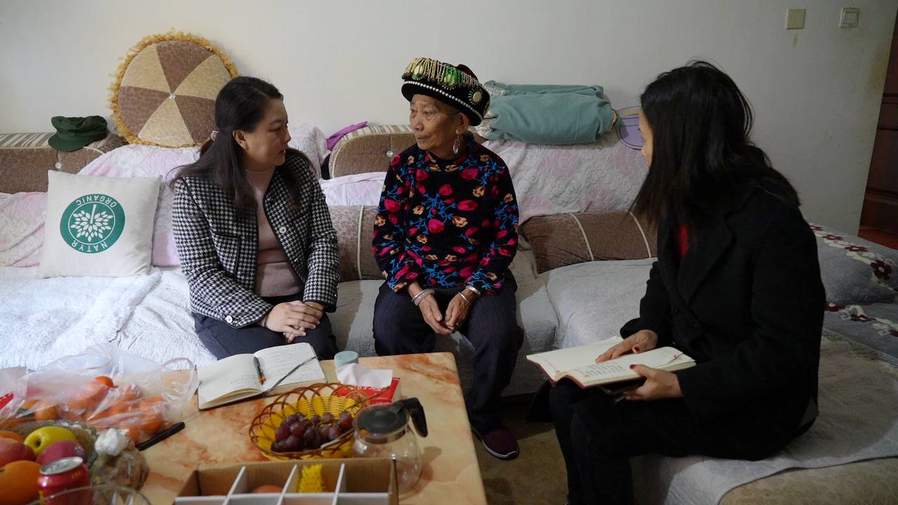 黄洁颖(左)走访群众