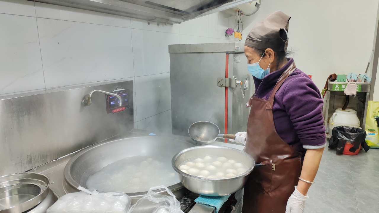 活动现场暖意融融,大家围坐一起搓汤圆、话家常,欢声笑语不断。工作人员煮汤圆、盛碗、递送,一碗碗热气腾腾的汤圆香甜可口。