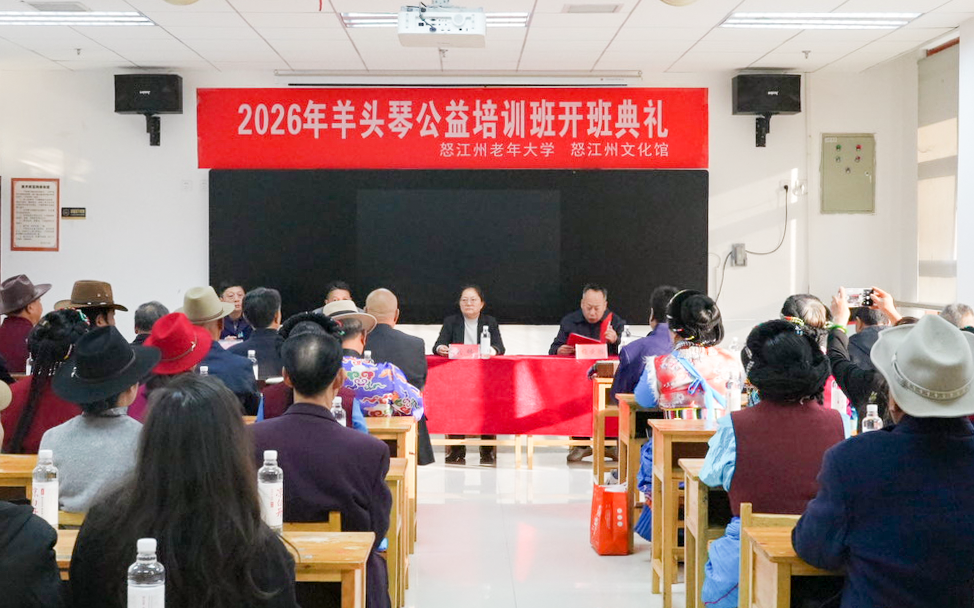 3月4日,由怒江州老年大学、怒江州文化馆联合主办的2026年普米族羊头琴培训班正式开班,数十名热爱民族文化的老年学员齐聚课堂,开启非遗技艺系统学习之旅。